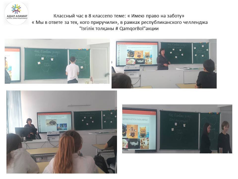 Классные часы в рамках республиканского челленджа "Ізгілік толқаны # QamqorBol".